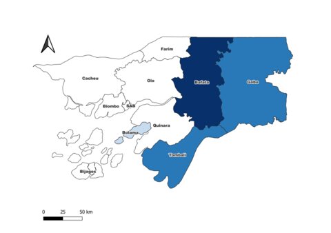 In 2023, Guinea Bissau implemented SMC in four regions (Bafatá, Bolama, Gabú and Tombali) via a mass door-to-door campaign targeting children aged three months to five years from August to November. Coverage ranged from 47% in Bolama to 97% in Tombali.